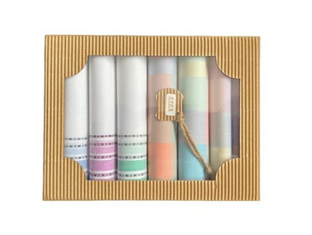 Sechs Damentaschentücher in einer weißen Schachtel